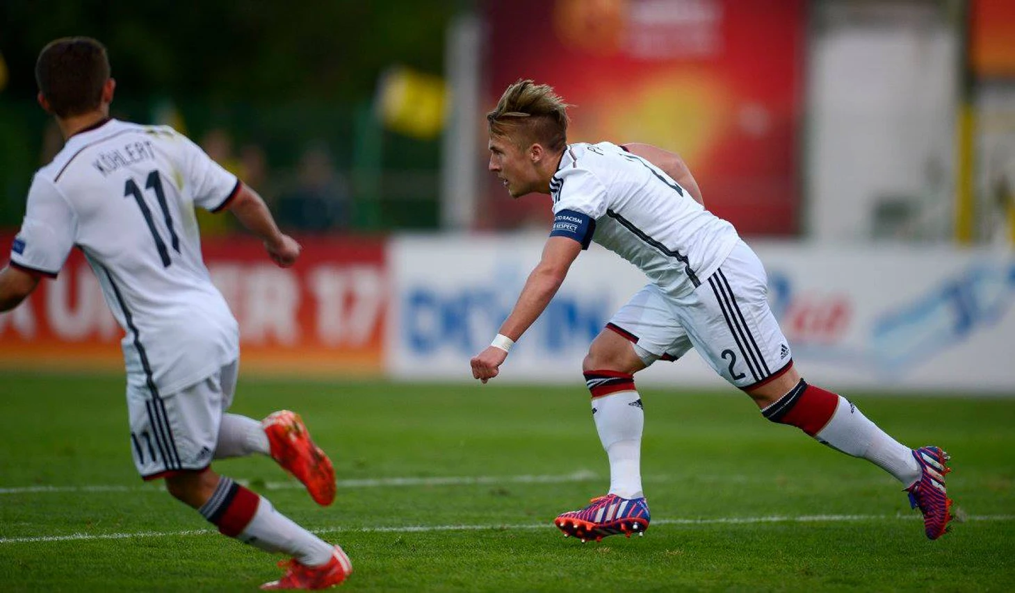 Немцы забили в Болгарии уже семь мячей (не пропустив ни одного), и автор трех из них – второй номер и капитан команды Кристиана Вюка Феликс Пасслак, с четырнадцати лет зажигающий на правом фланге атаки дортмундской «Боруссии». Пасслак – капитан не только сборной, но и «Боруссии» U-17, где он иногда играет правого защитника и все равно действует потрясающе результативно: 16 мячей и 16 голевых передач в 21 матче западной юниорской бундеслиги. Пасслак забил первый мяч немцев на Евро-2015, метко пальнув с угла штрафной в дальний угол бельгийских ворот – а потом атакующий полузащитник Никлас Шмидт забил еще более дальним ударом, перед этим разыграв стеночку с Пасслаком в середине поля. В третьем туре с чехами Пасслак сделал дубль, сначала загнав мяч под перекладину сильным ударом с правой, а потом убежав один на один с вратарем чехов Филипом Труксой почти от центра поля.