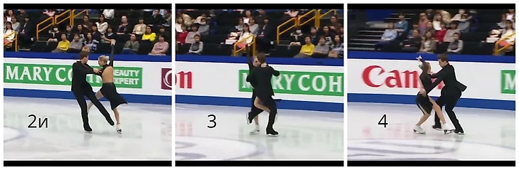 Ноги партнеров здесь работают скорее на раскрытие более простого ритма мелодической линии, а вот руки, работающие то вместе, то слегка вразнобой с ногами, позволяют дополнить и усложнить этот ритмический профиль неожиданными акцентами, в том числе и на ту самую ключевую долю 2и (на картинке ниже запечатлен момент, когда этот акцент подчеркивается распрямлением левой руки):