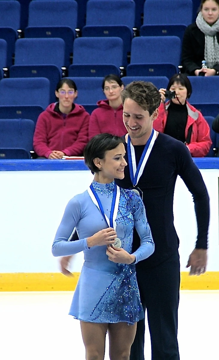 Две наши пары для начала сезона показали очень чистые и уверенные прокаты и заслужено заняли первые два места на пьедестале. Полностью заслуженно и их разделение на первое-второе места: уровень исполнения элементов у этих пар очень разный. Это очень заметно, когда видишь их выступления друг за другом: вот очень симпатично и чистенько выступили Ефимова-Коровин и думаешь даже — ну ничего себе, это заявка! А потом выходят Мишина-Галлямов и сразу понимаешь, насколько все может выглядеть мощнее чисто в техническом плане. Безусловно, эта пара — один из явных кандидатов в сборную России в самом ближайшем будущем. Единственное, чего им немного недостает при живом просмотре, это харизмы и уровня постановок. Особенно это касается короткой программы, которая, вероятно, еще и не так хорошо вкатана и, если честно, им не очень идет. В произвольной, оставленной с прошлого года, они смотрятся увереннее и лучше, но и там чего-то трудноопределимого все-таки не хватает — какой-то малости, которая пока не позволяет причислить эту пару к топовым.