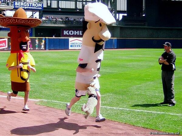 2Во время традиционного забега маскотов-сосисок после восьмого иннинга в матче «Атланта» - «Милуоки», на поле выбежал новый талисман «Милуоки» собака Хэнк и мёртвой хваткой вцепилась в сосиску сосиски-лидера забега. Хэнка долго не могли оттащить и удалось усыпить лишь с помощью 4-х транквилизаторов. А пока, бежавшие вторая и третья сосиски помогали лидеру собрать на поле куски поролона, идущая 4-ой польская сосиска выиграла забег. Сегодня соберется специальный совет, чтобы рассмотреть законность победы польской сосиски... Прекрасная первоапрельская история от «Милуоки».