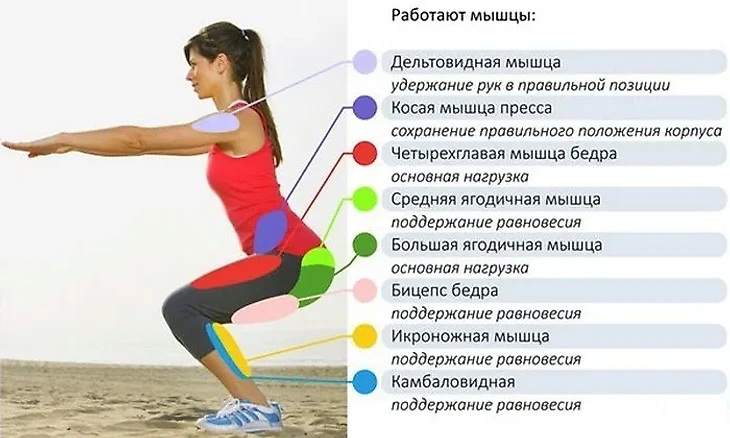 Если описать тело во время выполнения приседаний, можно сформулировать несколько тезисов: