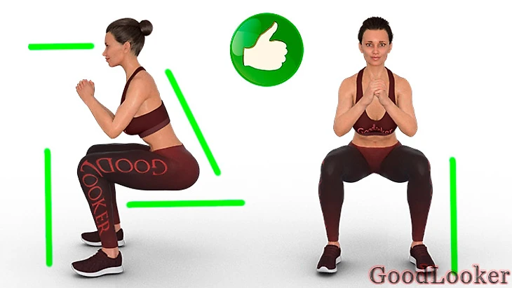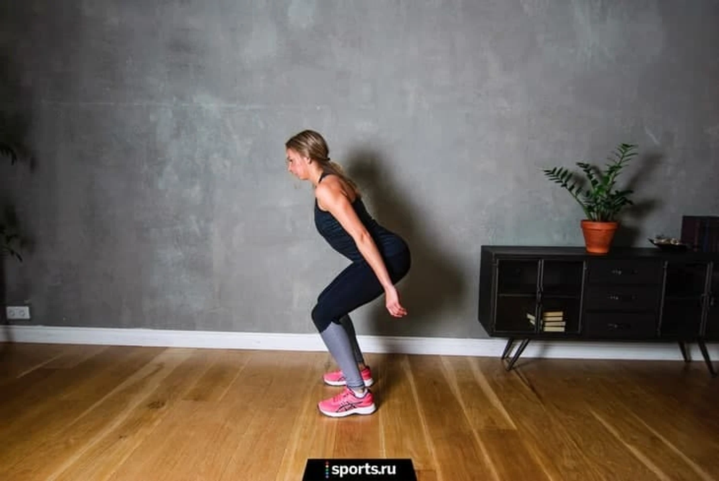 Присаживаться не стоит слишком глубоко. Многие стараются опуститься как можно ниже, но так мышцы получают мало нагрузки, а колени — много. Поэтому для достижения максимальной мышечной нагрузки нужно опускать бедра до положения, где они находятся параллельно полу.