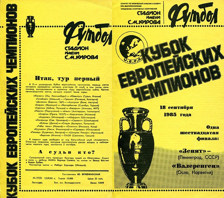 1985 – дебют и первая победа «Зенита» в розыгрышах Кубка чемпионов.