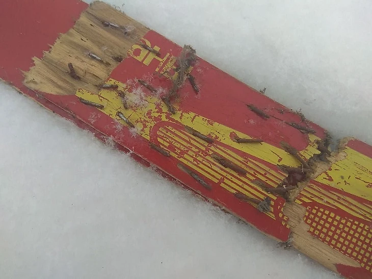 Есть два минуса: очень заметно и очень больно. Очень больно было получать по жопе от папы – так заметно свой косяк я еще никогда не маскировал. Из-за гвоздей лыжи перестали ехать от слова совсем. Оказывается, их можно было склеить каким-то супер-веществом. Но было поздно.