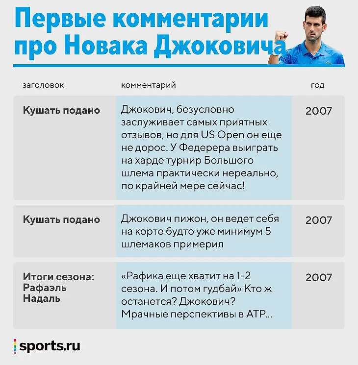 Иногда потенциал великих спортсменов понятен сразу, а иногда им приходится доказывать состоятельность, в том числе в комментариях на Sports.ru. Мы покопались в архивах, чтобы отобрать самые интересные из ранних комментов (в нашей базе сохранено все с 2007 года) о будущих суперзвездах.