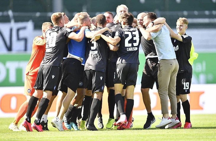 А теперь спускаемся в самый них турнирной таблицы. И там эмоции еще горячее! «Карлсруэ» обыграл на выезде «Гройтер Фюрт» и сохранил прописку во второй Бундеслиге!