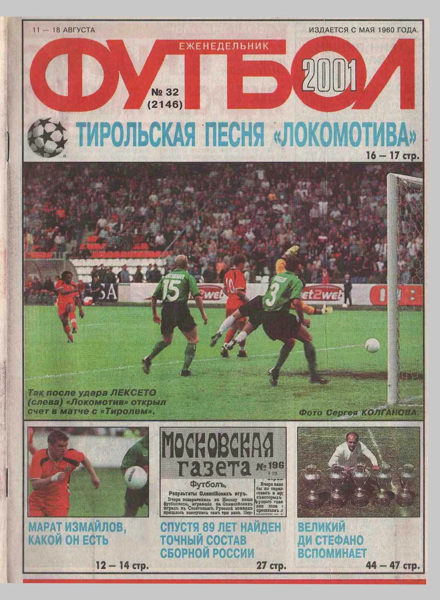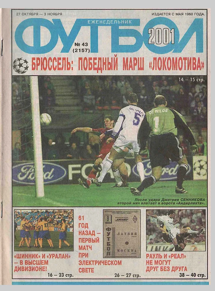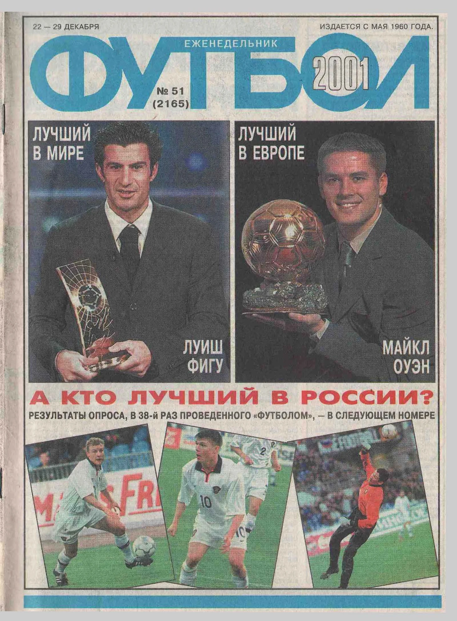 В честь 60-летия еженедельника «Футбол» («Футбол-Хоккей») продолжаем сериал на основе обложек культового издания. И сегодня у нас дайджест главных событий 2001 года!