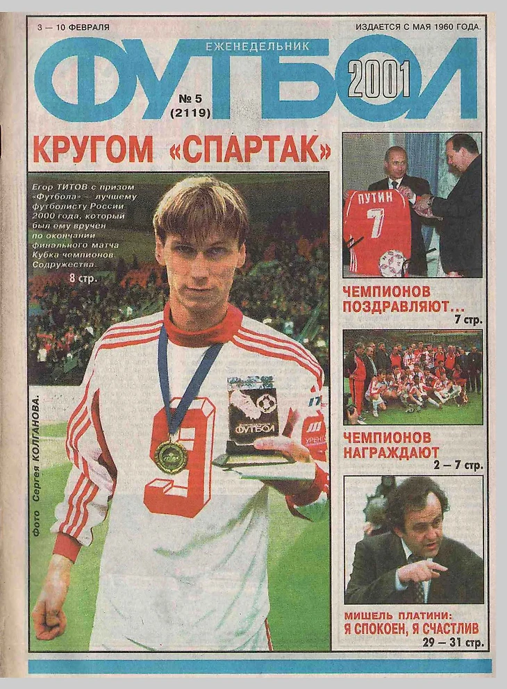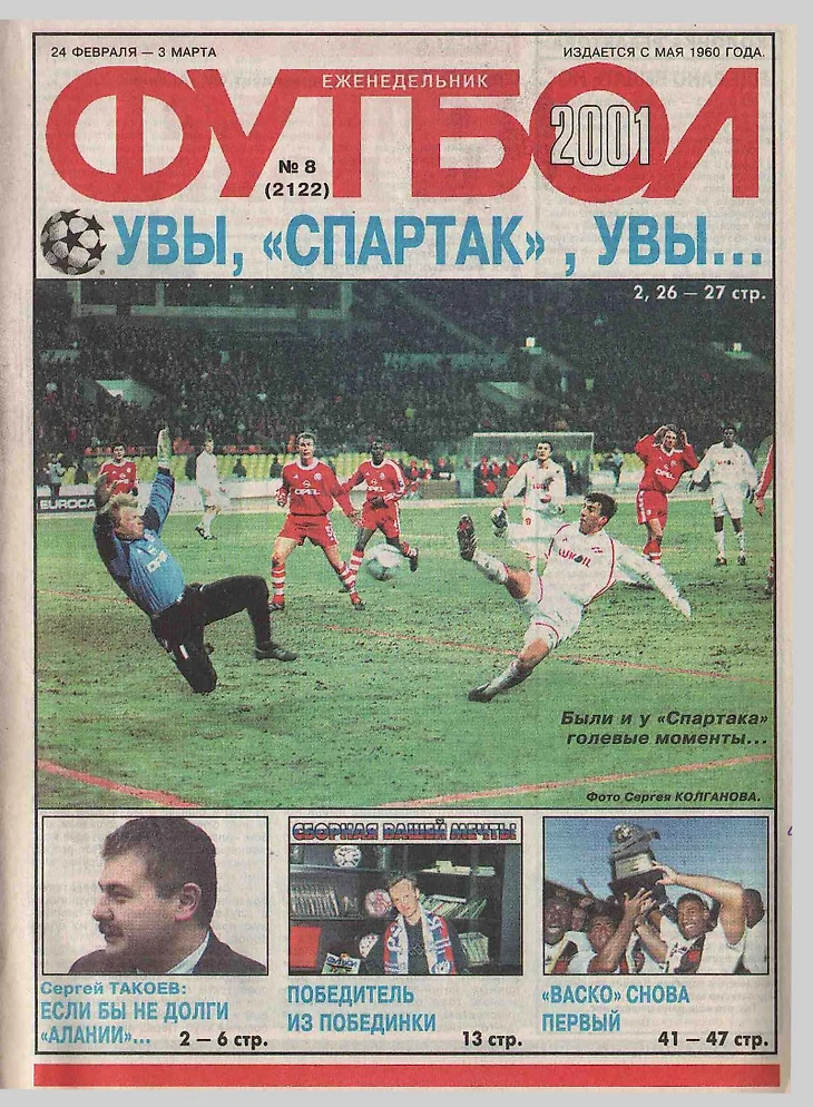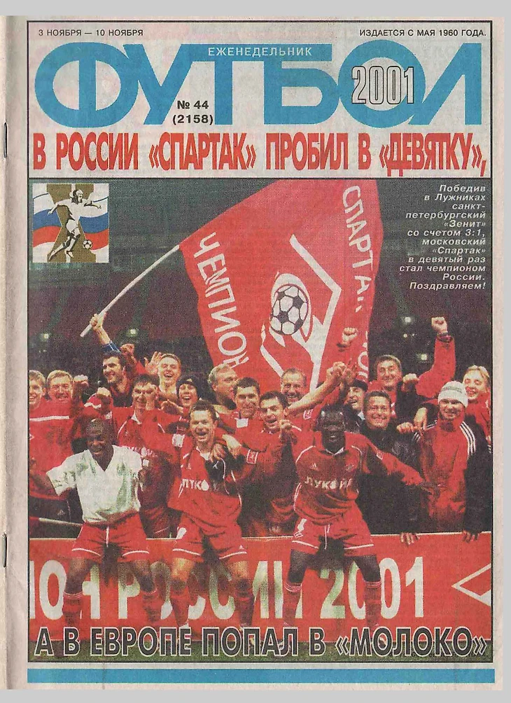 Первые медали «Зенита», девятое чемпионство «Спартака», дебют «Локо» в ЛЧ. 2001 год в обложках еженедельника «Футбол»