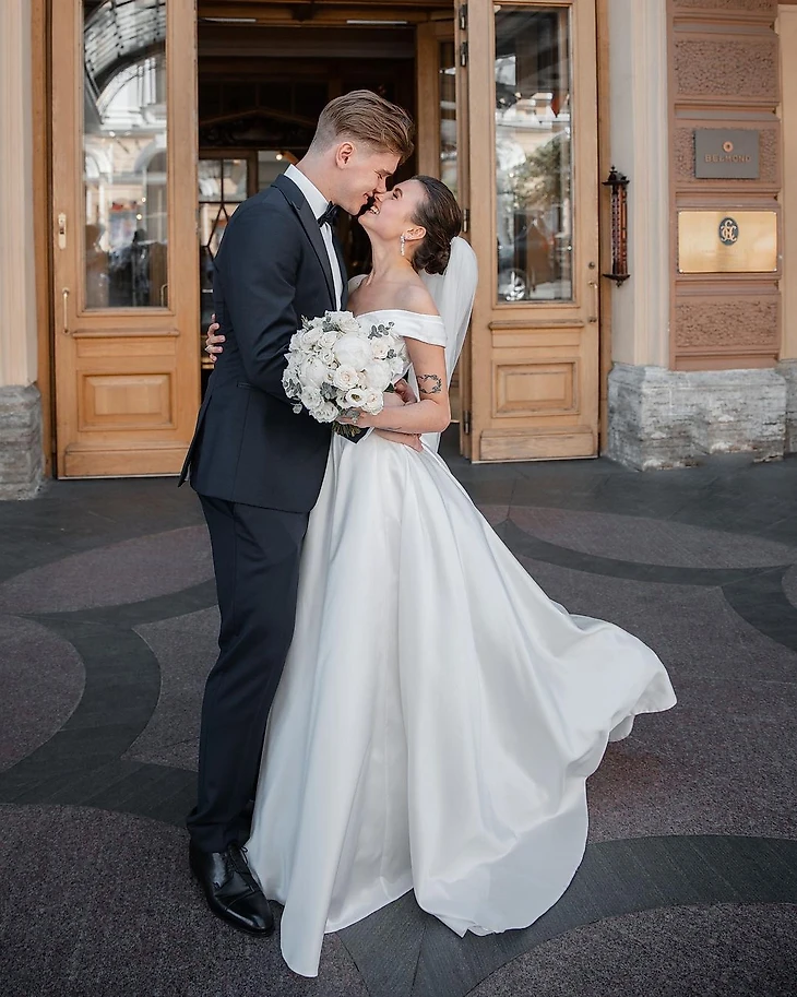 Василий и Александра сыграли свадьбу в июне 2021 года – хоккеисту вот-вот должно было исполниться 20 лет. Игрок тогда еще петербургского СКА лаконично написал об этом событии в соцсетях: «Короче, я женился. Очень нервный день, но все прошло очень хорошо!»