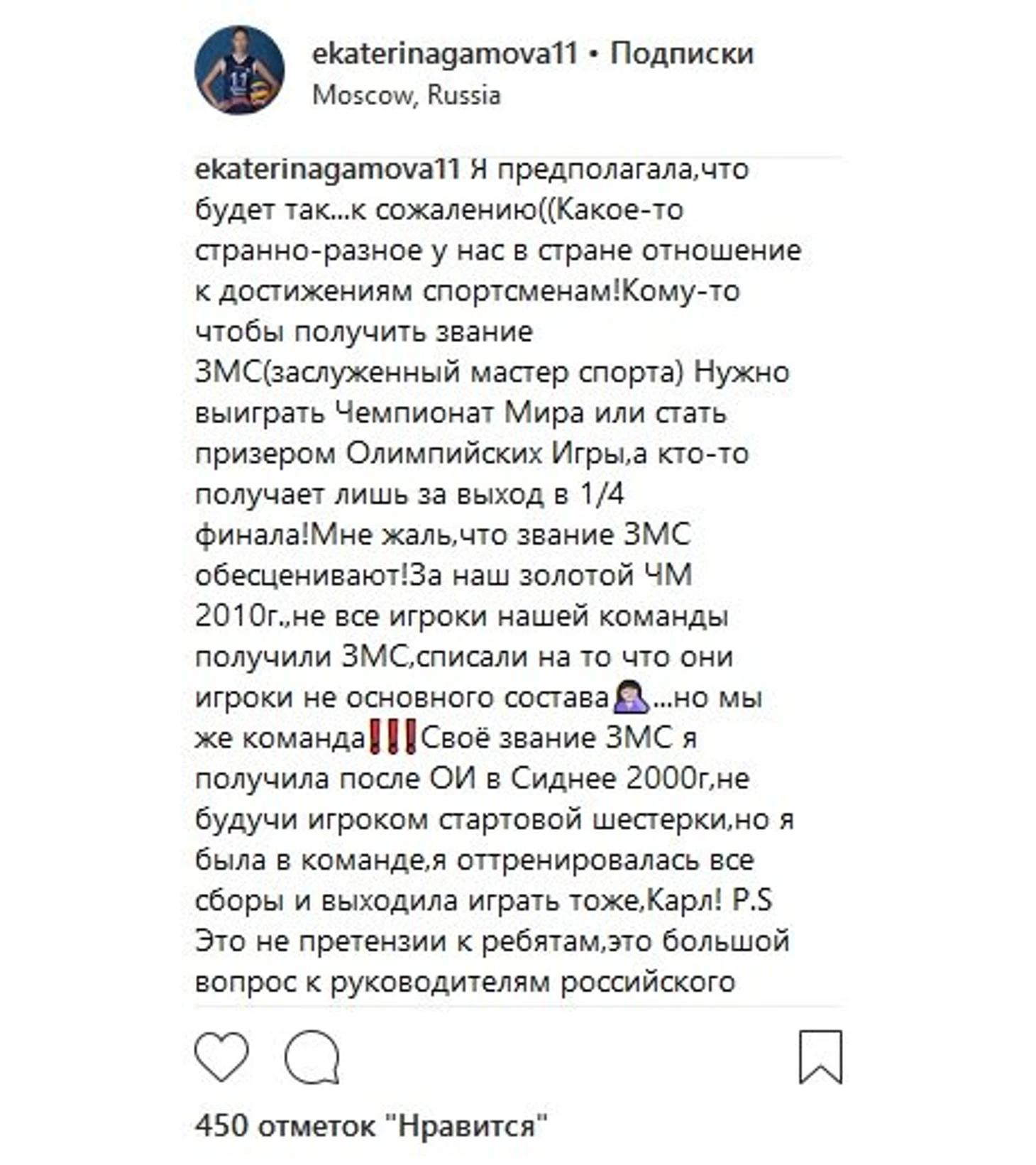 P. S. Это не претензии к ребятам, это большой вопрос к руководителям российского спорта», – написала Гамова, отметив в сообщении аккаунт Министерства спорта России и поставив хэштег «Павел Колобков».