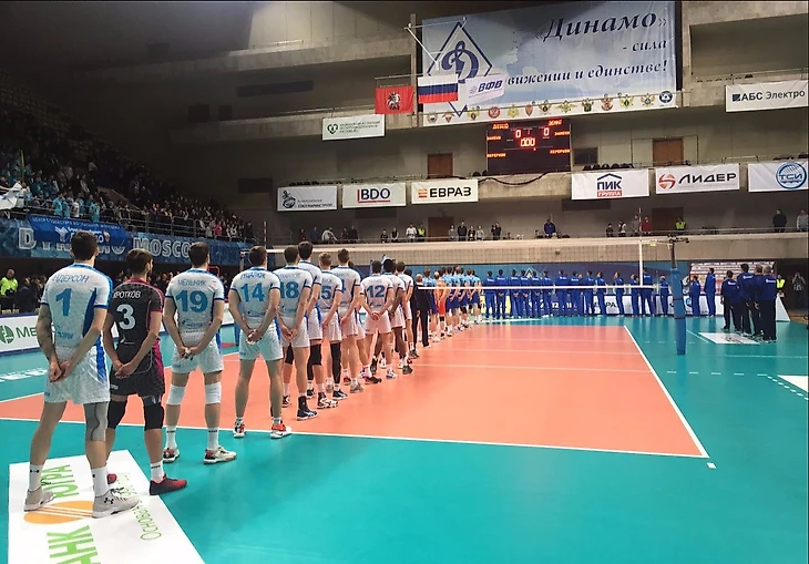 Состав московского "Динамо": Алексей Остапенко и Дмитрий Щербинин - по центру, Константин Бакун по диагонали, связующий Сергей Гранкин, доигровщики - Александр Маркин и Юрий Бережко, либеро команды - Артём Ермаков и Роман Брагин.