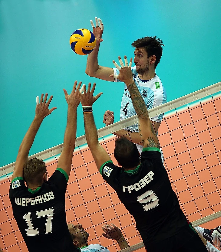 Так было и в этот раз. С подачей немца еле справился самый заслуженный либеро России и "Зенита" Алексей Вербов, оставив таким образом свою команду без атаки. Однако на полноценную атаку "Локомотива" (связующий "Локо" Лукьяненко, кстати, решил отдать мяч всё тому же Гроцеру) у "казанцев" был выстроен тройной блок. Пробить его Гроцеру удалось, а вот забить нет - на подстраховке "дежурил" Максим Михайлов, который мяч поднял. Дальше - дело техники, ну и немножко опыта - Вербов пасует на Вольвича, а Артём продавливает мяч через блокирующего с другой стороны сетки Щербакова.