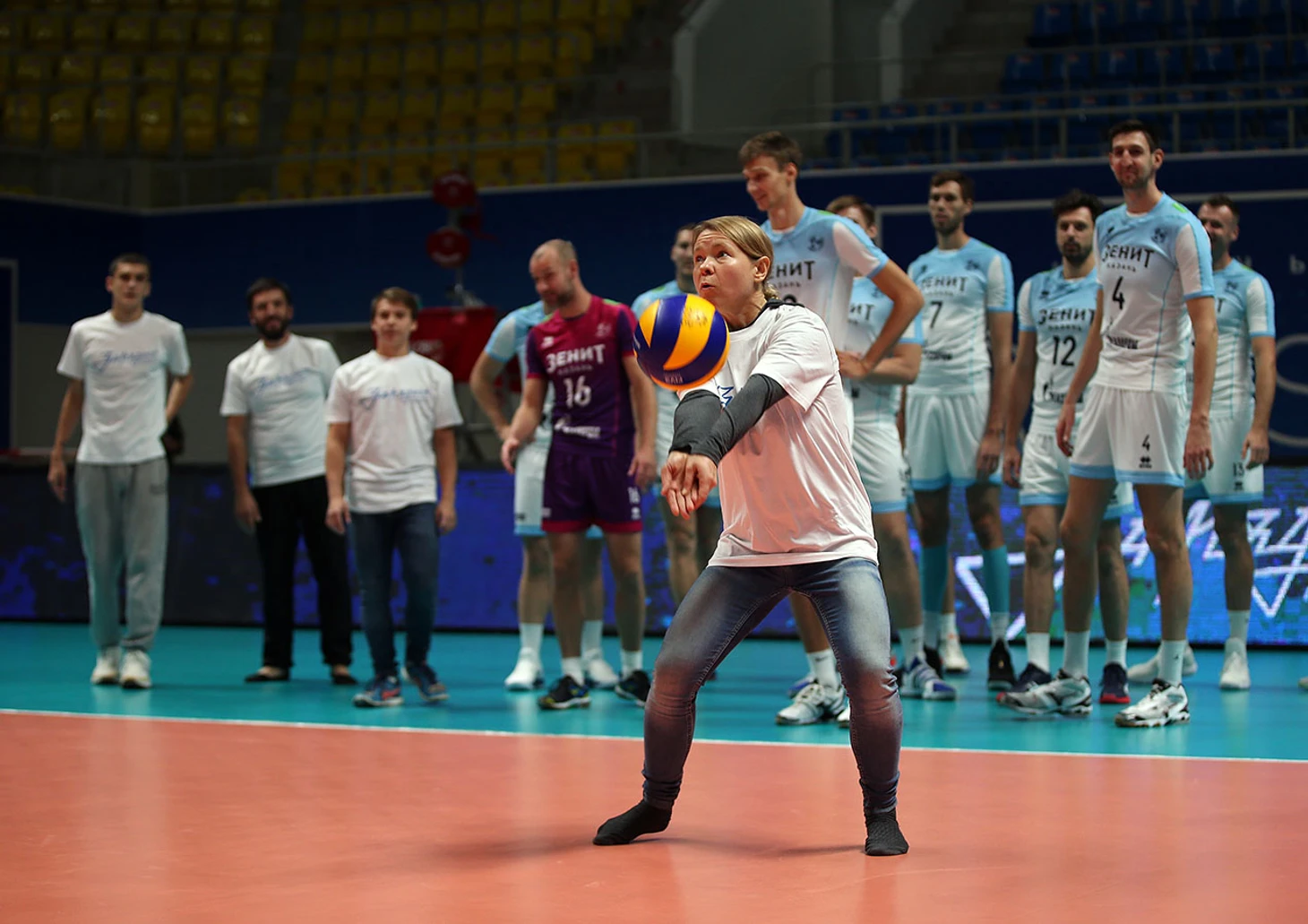 Те поклонники, которые присутствовали на презентации команды, получили уникальный шанс — ведущий выбрал из зала пять человек, которые немного потренировались с лучшими игроками планеты. Тренировку игроки начали с небольшой разминки, после чего к волейболистам присоединились зрители. Кто-то их них, судя по навыкам, регулярно играет в волейбол, некоторые делают это реже. Вместе с болельщиками «зенитовцы» поработали над точностью передачи, а Владимир Алекно сопровождал происходящее ироничными комментариями.