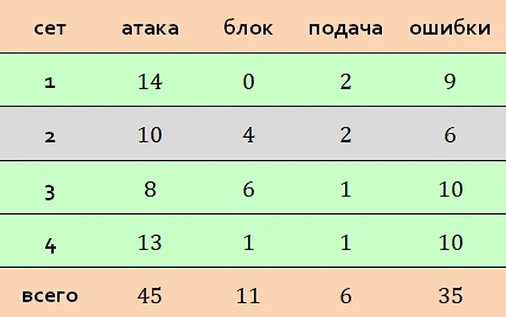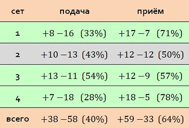 В этой Лиге наций ещё никто не дарил нам столько очков своими ошибками. Особенно впечатляют показатели третьей партии с учетом того, что результативный блок — это отчасти тоже ошибка атакующей стороны.