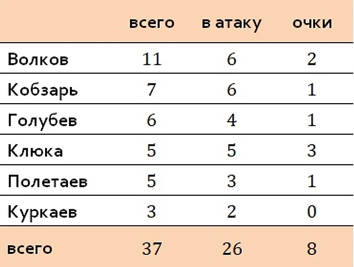 В этом матче наши подняли в защите много мячей (особенно Волков летал по задней линии), но мало из этого извлекли пользы. Зато блок выдал фестиваль:
