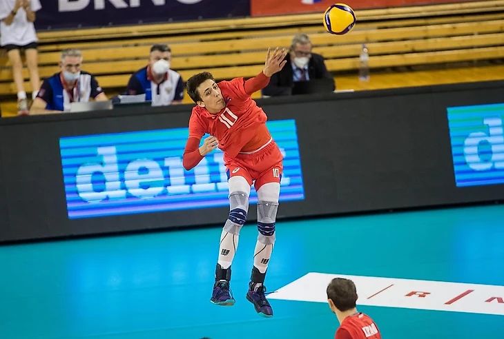 Во-вторых, этого самого Илью Казаченкова (в прошлом году он у нас был капитаном команды — наверное, и теперь капитан) тренер Михаил Николаев выпустил на замену довольно необычным образом — на подачу на матчболе вместо диагонального Мурашко, который вообще-то сделал в игре два эйса. Илья подал хорошо, но в том розыгрыше итальянцы справились. Решающую подачу (ровно следующую) у нас выполнял Динейкин.