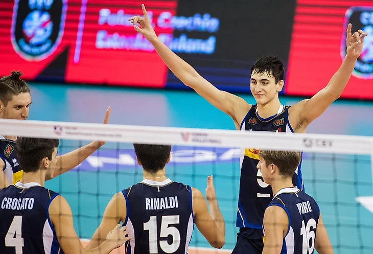 У Италии очень крутая молодёжка с блестящим связующим Паоло Порро и непременным MVP доигровщиком Алессандро Микелетто (на этом чемпионате он опять стал MVP, несмотря на). Всех дофинальных соперников итальянцы вынесли со счётом 3-0, и в первой партии финала спокойно обыгрывали наших на классе. Преподавали, так сказать, урок красивой игры. Российский блок отсутствовал как класс (0 очков за сет). Наши тоже старались, связующий Аношко играл пайпы чаще, чем Бутько во взрослой сборной — но ощущение было такое, что у России проблески, а у итальянцев система. Но как-то так получилось, что этот сет взяли россияне. В середине партии пару эйсов сделал Мурашко — благодаря им счёт после 11-14 сравнялся (кстати, первая подача прилетела в непременного MVP, который довёл мяч до рекламного щита); а потом итальянская блистательная игра не то чтобы стала давать сбои (пока что нет), но стала менее, что ли, убийственной. И в этом заслуга была именно наших — во-первых, они напрягли итальянцев, лишили чувства очевидного превосходства, а во-вторых — воспользовались предоставленными шансиками и партию выцарапали. Решающий отрезок сета случился на подаче связующего Аношко (хотя Антон подаёт достаточно скромно) — после 16-18 счёт стал 21-18.
