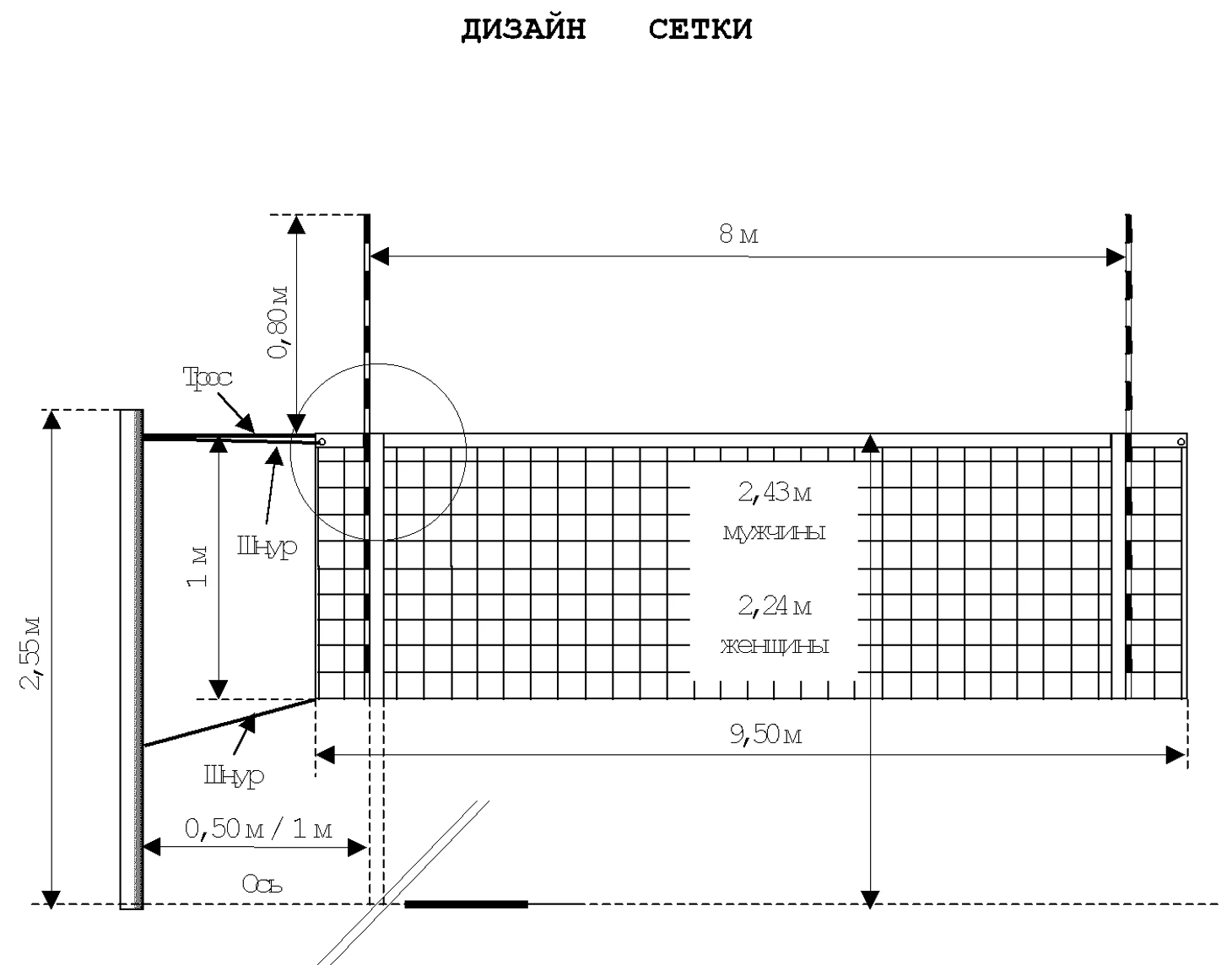 Высота и размеры волейбольной сетки для мужчин и женщин