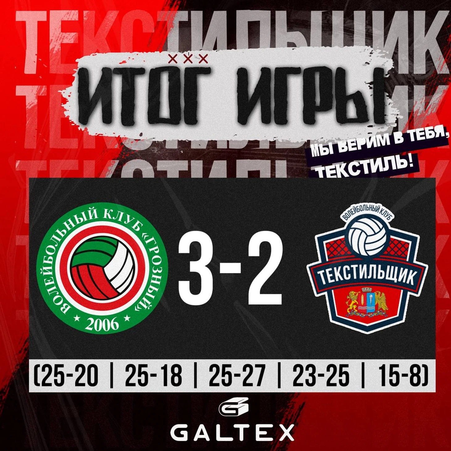 Начало пятой партии явно выдалось лучше у грозненцев.» Текстильщик» пытался нагнать. Счет был 8-3,потом 11-6. Но в этот раз команда из Грозного не позволила игрокам из Иваново повторить успех предыдущего тура,когда в 5ти сетах «Тектильщик» обыграл ВК «Обнинск» . Обидное поражение при неплохой игре.