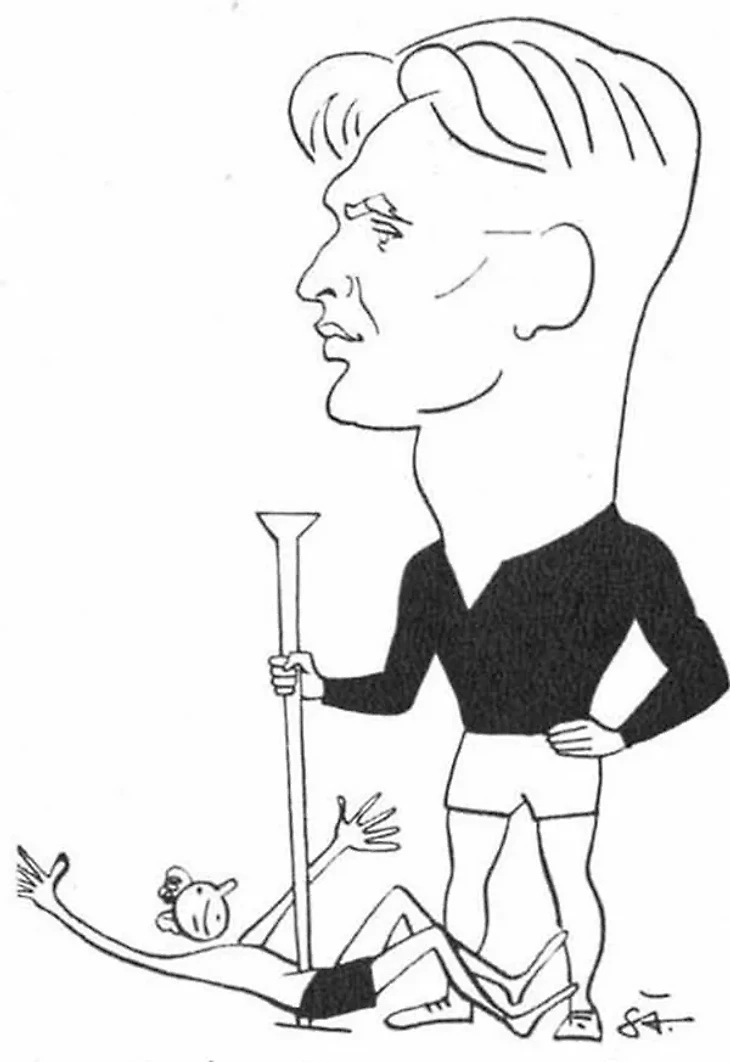 «Удары Константина Ревы пригвождали соперников к земле», — подпись чехословацкого художника к шаржу, нарисованному в 1949 году во время чемпионата мира по волейболу в Праге
