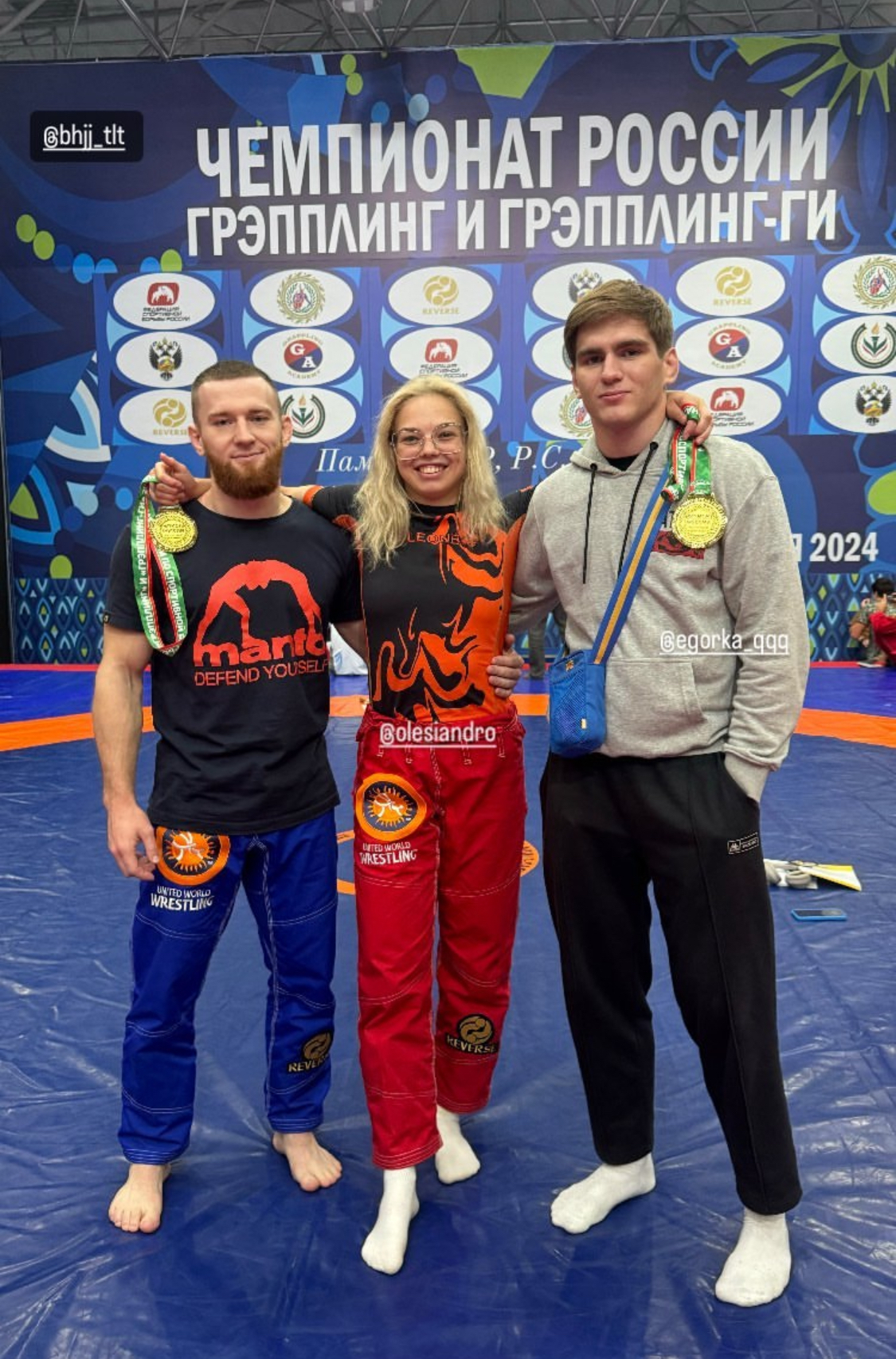 Поздравляем Олесю Журавлеву с блестящим выступлением и завоеванием золотых медалей сразу в двух дисциплинах (грэпплинг и грэпплинг-ги) в категории до 58 кг.