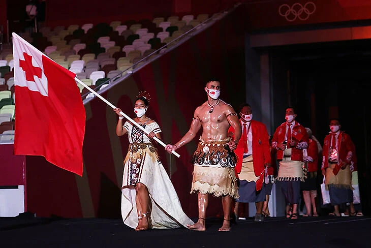 На параде спортсменов в Токио снова запомнился знаменосец сборной Тонги (полинезийское королевство из 177 островов в Тихом океане) Пита Тауфатофуа.
