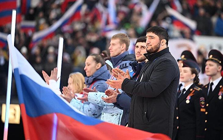 ● Если все-таки пытаться найти связь между влиянием МОК и недопуском борцов, то на ум приходит митинг-концерт в «Лужниках» в марте-2022. Садулаев и Угуев там были, выходили на сцену, как и еще один олимпийский чемпион Заурбек Сидаков. Если что, Сидаков и Угуев не поехали на квалификацию в Баку.